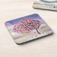 Árbol de amor con hojas de corazón rojo sobre fondo morado gris y rosa