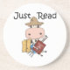 ¡Apenas lea las camisetas, las sudaderas con capucha, las tazas, las tarjetas, los pegatinas, los botones, los imanes, los mousepads, los diarios, los recuerdos, y otra ropa y regalos del tema de la lectura que promueven el leer adentro de una manera linda! ¡Una vaca con un gorra de paja y un pitchfork descansa contra una bala de heno con un libro!