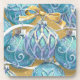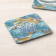 Patrón de pelota de Navidades exquisitamente ilustrado con cintas blancas que fluyen a través de confeti, adornadas con cintas doradas y fondo de tono dorado. Por el Diseñador de patrones de superficie L Diane Johnson.