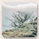 Una solitaria helada cubrió un árbol de montaña salvaje con nubes de nieve en el cielo. Gales Reino Unido.
