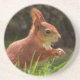 Una rara ardilla roja parece sonreír con gusto ya que disfruta de un tentempié en el césped exuberante. Su boca abierta y sus ojos brillantes reflejan la alegría pura, capturando un momento fugaz de felicidad en la naturaleza.