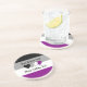 Sandstone coaster with the asexuality pride flag with little hearts in the center of the design. Black, gray, white, and magenta/purple flag of the ace pride movement; with an editable text field for your name or message