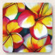 con el diseño original de arte de la pintura acuarela de Sacha Grossel de flores tropicales de frangipani rosa, amarillo y blanco en foco cercano, macro estilo. Este diseño botánico floral, colorido y luminoso recuerda al verano, la cultura del surf, el clima cálido y estar cerca de la playa.