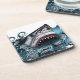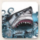 Diseño original de un tiburón saliendo del agua. Creado con lápices, lapiceros y coloreado en Photoshop.