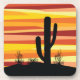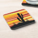 Resumen de ilustracion geométrico del desierto con rayas diagonales amarillas, naranjas y rojas y decoración de cactus. Agregue su nombre/monograma o elimine el texto.