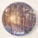 Posavasos Atardecer en un bosque de pinos nevado con rayos s