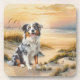 Dog moms and dog lovers of the Australian Shepherd dog breed will adore this coaster set that features a summer beach cove with tall grasses and the sun setting over the ocean that sets off a sweet Australian Shepherd dog.