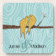 Posavasos Aves amorosas verde azuladas besándose sentadas en
