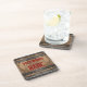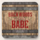 El conjunto de montaña rusa de corcho de Guay para los que viven en la vida rural presenta el texto rojo oscuro y angustiado "Backwoods Babe" con fantasía floreciente en un fondo de madera de whisky keg.