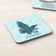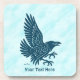 Una simple silueta azul de un cuervo vivo (Corvus corax) de estilo nórdico-celta, superpuesta a una imagen de fondo nevada. Personalizar agregando su propio texto.