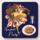 Elegante, colorido, vibrante diseño elaborado a partir de la cosecha italiana Art Deco, una bella dama con verduras y un gran plato de pasta de espagueti en tierra azul.. personalizable fácil para fiestas de cumpleaños, graduaciones escolares, reuniones, Navidades, fiestas de oficina, reuniones familiares y muchos otros eventos...