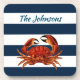 Cangrejo rojo sobre rayas azules náuticas, perfecto para el mar o la costa. Personalizar a su gusto.