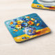 Beautiful coaster with a beautiful impasto style ai illustration of blue and orange flowers in a fancy vase.