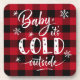 Un divertido diseño de invierno - Bebé, es Frío Afuera que te hará sentir frío mirando los copos de nieve - quizás necesites chocolate caliente para ir con él! El popular fondo rojo y negro de chapa de búfalo muestra el guión del pincel y la tipografía de copo de nieve.