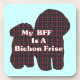 Mejor Amigos Para Siempre. Los amantes del perro saben que el mejor amigo que pueden tener es ese dedicado amigo canino. ¡Tu perro cree que eres perfecto, incluso en tu peor día de cabellos! Nuestros productos BFF están disponibles para 225 razas de perros diferentes. El texto dice: Mi BFF es tu raza, y se coloca dentro de la silueta de raza de perro de lona tartán. Disponible en prendas de vestir para toda la familia amante del perro. Otros artículos incluyen gorras, botones, totes, tazas y artículos más divertidos. Regalos únicos para cualquier ocasión especial, o tratate a ti mismo!