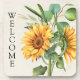 Este hermoso gráfico de girasoles sobre un fondo de papel antiguo beige hace un juego de montaña alegre y colorido. La frase BIENVENIDA también se puede editar a la frase deseada si lo desea.