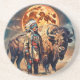 Este impresionante gráfico capta un momento poderoso y simbólico, con un jefe nativo americano de pie orgullosamente al lado de un majestuoso bisonte bajo el resplandor de una radiante luna llena.