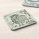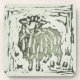 Individual sage green linocut sheep image taken from the cute farmhouse style block print donkey and sheep cheater patchwork quilt in pine mint green and warm beige brown colors. This is a cosy barn design for the Christmas winter holiday season, but the print is versatile enough to be enjoyed at any other time of the year as well. Match these green sheep coasters with the earth tone brown donkey coasters from this collection.
