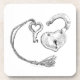 Dibujo de pluma y tinta de un candado en forma de corazón y de una llave sobre un conjunto de 6 tiras de plástico duras. Hay tazas de juego disponibles. Pintura: Lápiz y tinta sobre papel. Derechos reservados Dominic A. White. Todos Los Derechos Reservados.