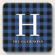 Add a cozy, festive touch to your holiday table decor with this blue and black buffalo plaid coaster with Monogram and Family name. Perfect for Christmas decorating, rustic farmhouse interiors, or cabin-style living rooms bar. Personalize it with your single initial monogram and family name beautifully displayed in the center for a custom, elegant look.