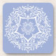 Esta mandala blanca se asienta sobre un polvoriento fondo de guijarros. Los colores son suaves y relajantes. Parte de la colección Jarn Mandala.