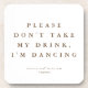 Este es un POSA VASOS DE BODA con tema minimalista moderno rústico que presenta un diseño elegante y atemporal con el texto divertido "POR FAVOR NO TOMEN MI BEBIDA, ESTOY BAILANDO" Edite todas las palabras y todos los colores para hacer que este posa vasos de boda minimalista se adapte a las necesidades de su evento y su estilo personal. Simplemente seleccione "editar usando la herramienta de diseño" en la barra de herramientas :)