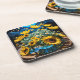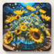 Florero sobre mesa, con paisaje en la noche de fondo, en colores luminosos. Tamaño 8,000 x 8,000, pixeles, 80 pulgadas. Arte digital en paisaje.