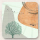 Diseño boho con colores verdes, naranjas y de menta, texturas y pájaros únicos