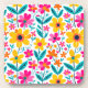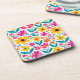 A drink coaster decorated with bold, colorful flowers in warm yellows, pinks, reds, and teal, adding cheerful, modern charm to coffee tables, dining settings, and home entertaining. A bright, gift‑ready accent for lovers of uplifting florals and expressive décor.