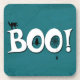 Diseño de texto para Halloween con decoración de gato, araña, búho y redes de araña sobre fondo azul grunge.