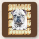 Bulldog inglés blanco lindo con un tipo de letra retro tostado con vibraciones vintage.