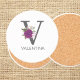 Posavasos Burgundy Dahlia Floral Alphabet Letter Monogram