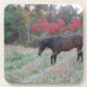 Posavasos Caballo marrón en los árboles de otoño rojos