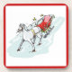 Este diseño es un caballo blanco tirando de un carro rojo a través de la nieve blanca. Las estrellas doradas se colocan alrededor de la carroza. Disponible con un borde rojo o verde. Disponible en diversos artículos para que coincidan.