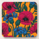 Patrón vectorial dibujado a mano con flores rojas de amapola y flores azules