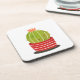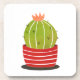 Un cactus de barril con una flor en una olla roja. Una moda de arte mínimo.