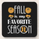 Pequeña calabaza marrón, hongos, ilustraciones botas de lluvia y el texto grande: La caída es mi temporada favorita.