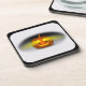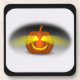 Este diseño presenta una calabaza naranja que parece estar brillando en la oscuridad. Una vela ilumina los ojos y una sonrisa. Se ve una sombra oscura detrás y a los lados de la calabaza. Se agregó un borde negro con un fondo de color. Estas galas vienen en redondo o cuadrado.