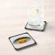 Este diseño presenta una calabaza naranja que parece estar brillando en la oscuridad. Una vela ilumina los ojos y una sonrisa. Se ve una sombra oscura detrás y a los lados de la calabaza. Se agregó un borde negro. Estas galas vienen en redondo o cuadrado.