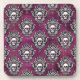 Los cráneos blancos dentro de marcos góticos están sobre un fondo morado. ¡Muy Halloween! ¡Asegúrate de comprobar las almohadas de los tiros!