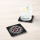 Un conjunto de gallos de plástico con un diseño de nudo celta con una cruz cuadrada roja en el centro.