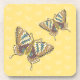 Las alas, el cuerpo y las antenas de una mariposa de cola de hisopo están decoradas con patrones encontrados en esculturas y codexes dejados por y alrededor del azteca o mexica. Los blancos, amarillos, azules y rojos brillantes, equilibrados con marrones y negros, pintan las formas geométricas y los motivos que se repiten.