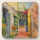 Este conjunto de galletitas de corcho decorativas cuenta con una adaptación de un bonito cuadro de arte de una pequeña calle de Santa Cruz, Islas Vírgenes, realizada por la artista estadounidense Anna Unterman. La escena luminosa y soleada es un revuelo de colores. Sobre el arco hay una vid de buganvillas de color rojo, rosa y magenta, así como viñas de llama naranja y otros arbustos y hojas verdes. Los edificios de colores son amarillos, dorados, azules y verdes. Reproducida con permiso de la finca de Anna Unterman. Todos Los Derechos Reservados.