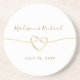Sencilla, elegante, minimalista y personalizada decoración de boda blanco puro, con un corazón falso de cuerda dorada y escritura moderna de caligrafía.