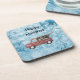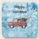 Posavasos camión de cosecha roja sobre fondo de copo de niev