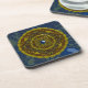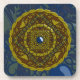 Esta mandala temática de Capricornio presenta una piedra lapis lazuli rodeada por el símbolo del signo, la constelación y el símbolo alquímico de la Tierra entre filigree y tejidos.
