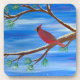 Esta es una escena invernal y nevada de un cardenal sentado en una rama de un pino espumoso —un pop de rojo contra un cielo azul. Esta imagen fue pintada originalmente en lona con pinturas de acrílico y cuelga en la casa del artista cada invierno.