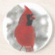 Este práctico de costa ofrece a un cardenal rojo brillante. ¡Él es verdad el rey de los pájaros del patio trasero! Aquí lo encaraman en un carril nevoso que come las semillas de girasol negras del aceite mientras que la nieve del invierno remolina alrededor de él.