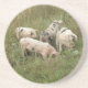 Esta montaña de piedra arenisca de bonito muestra una hermosa fotografía de un grupo de lindos cerdos en un campo. Algunos de los cerdos están en la tierra mientras otros miran.