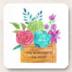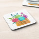 Una hermosa disposición floral de flores rosas, azules, púrpuras y verdes en una cesta sobre este posavasos para bebidas. Personalízalo con tu nombre y el año en que te casaste. Es un regalo excelente para ellos en aniversario o boda.